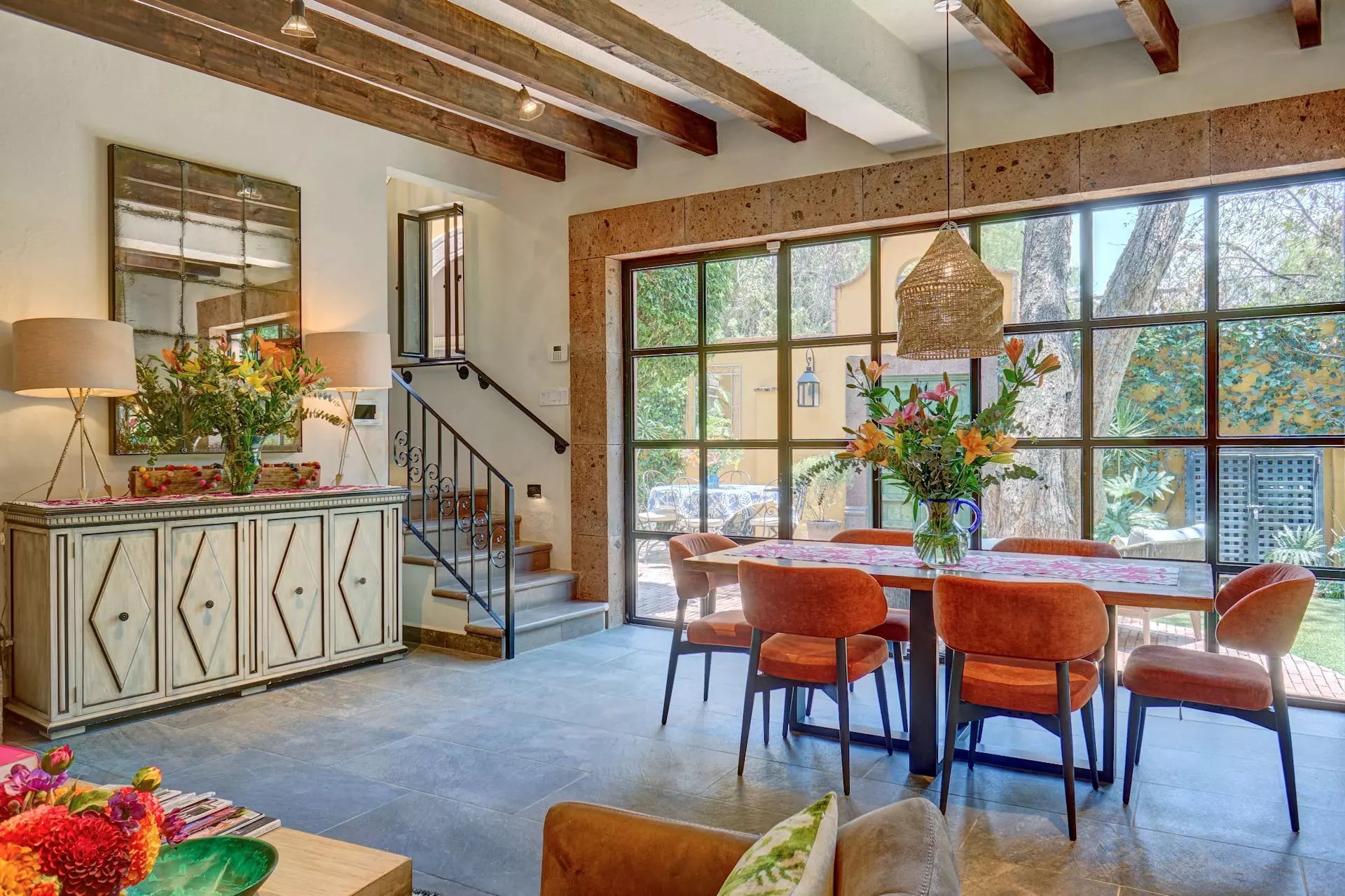 Currently operating successfully as an Airbnb, with a 91% occupancy and a 4.9 rating, this home boasts an impressive rental history, making it not only a perfect residence but also one of the best investment opportunities in the San Miguel market. Located in the coveted historic center of San Miguel de Allende, this stunning property perfectly blends colonial charm with modern luxury. From the moment you arrive, a beautiful garden welcomes you, featuring an elegant outdoor living area with a fireplace—perfect for enjoying San Miguel’s mild evenings. Inside, the spacious, fully equipped kitchen is designed for entertaining and flows seamlessly into the open-concept living and dining area.