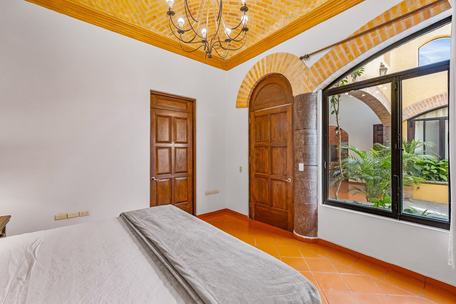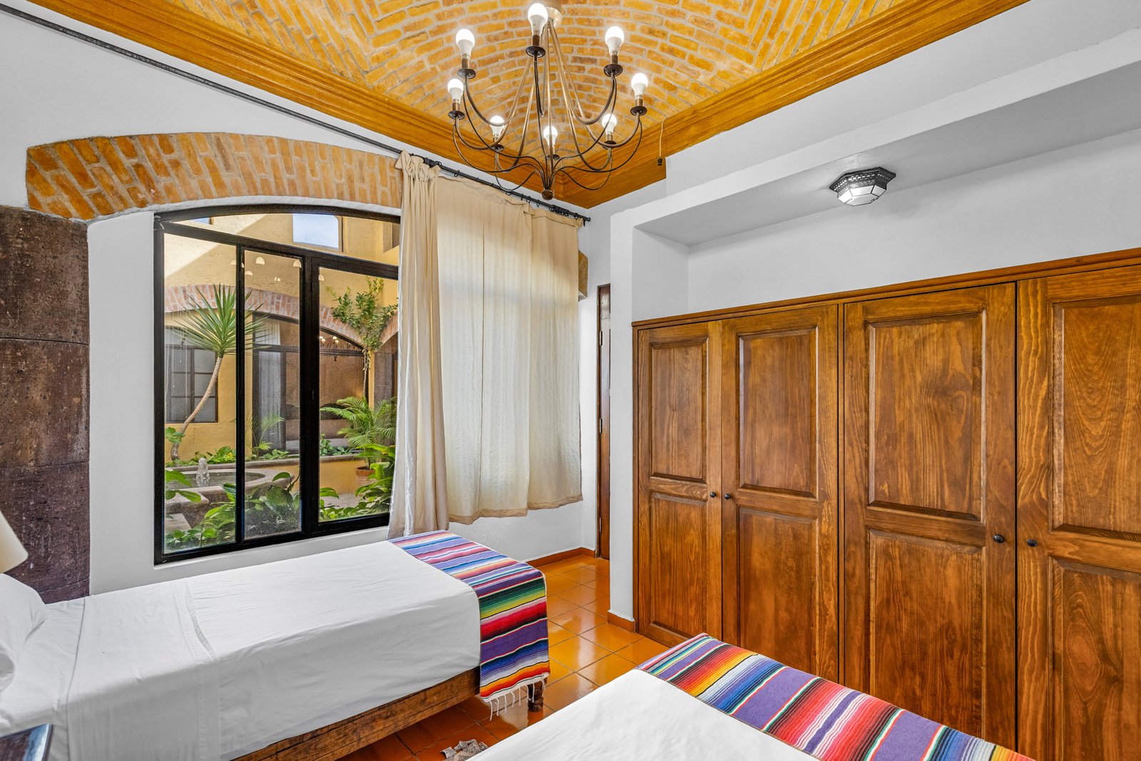 This beautifully designed 2-bedroom, 2-bath condo is located in an exclusive 12-unit gated community, offering the ease of single-level living. The home features spacious bedrooms, double-height ceilings, and abundant natural light throughout. An open-concept layout seamlessly connects the kitchen, dining, and living areas, all climate-controlled with mini-split systems. A standout feature is the stunning indoor courtyard, complete with a fountain, lush plants, and a retractable roof, creating a serene space to enjoy year-round. The condo also includes an attached one-car