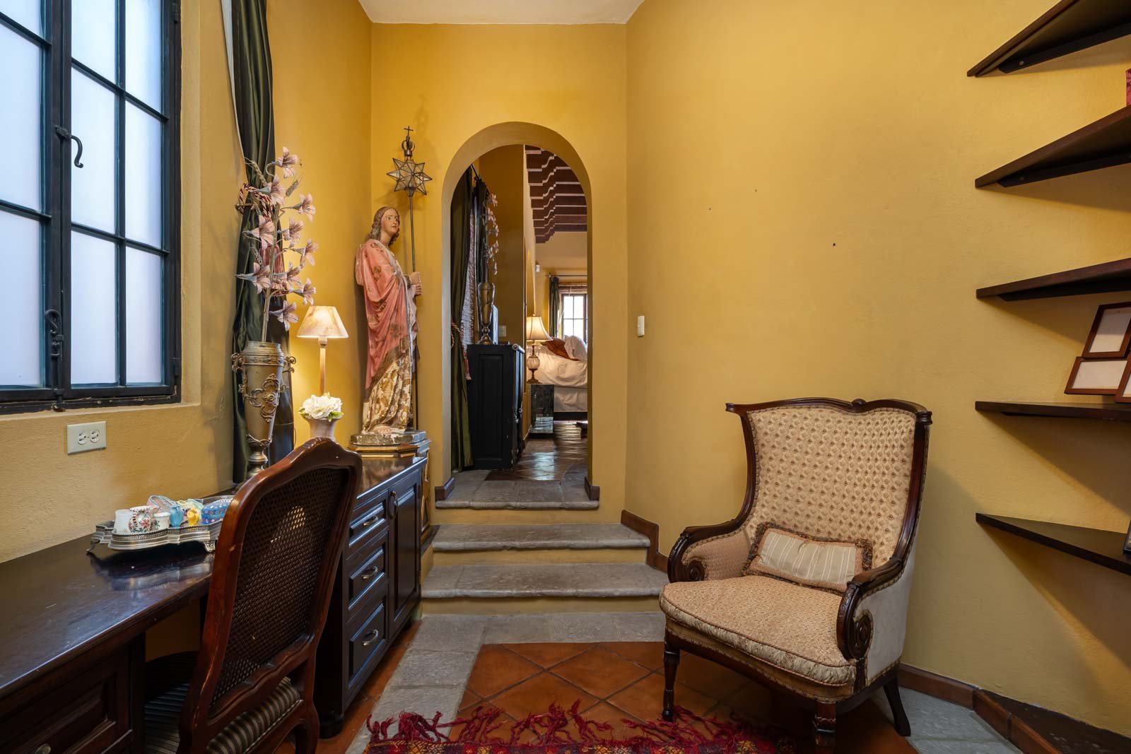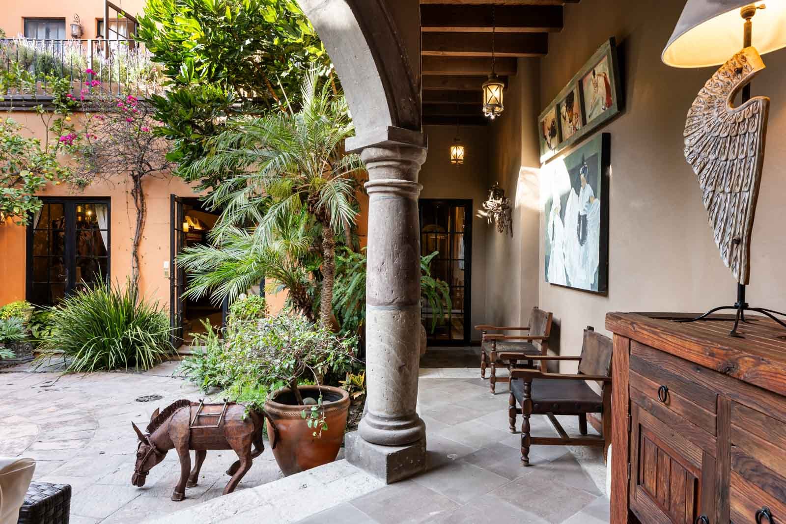 Tucked away on Privada Barranca, a quiet pedestrian alley hidden in the heart of the Historic Centro of San Miguel de Allende, this exceptional residence offers privacy, character, and timeless colonial elegance just steps from the city’s most iconic landmarks. Homes on private alleys in Centro are rare, and this location provides a peaceful retreat while remaining fully immersed in the magic of San Miguel.