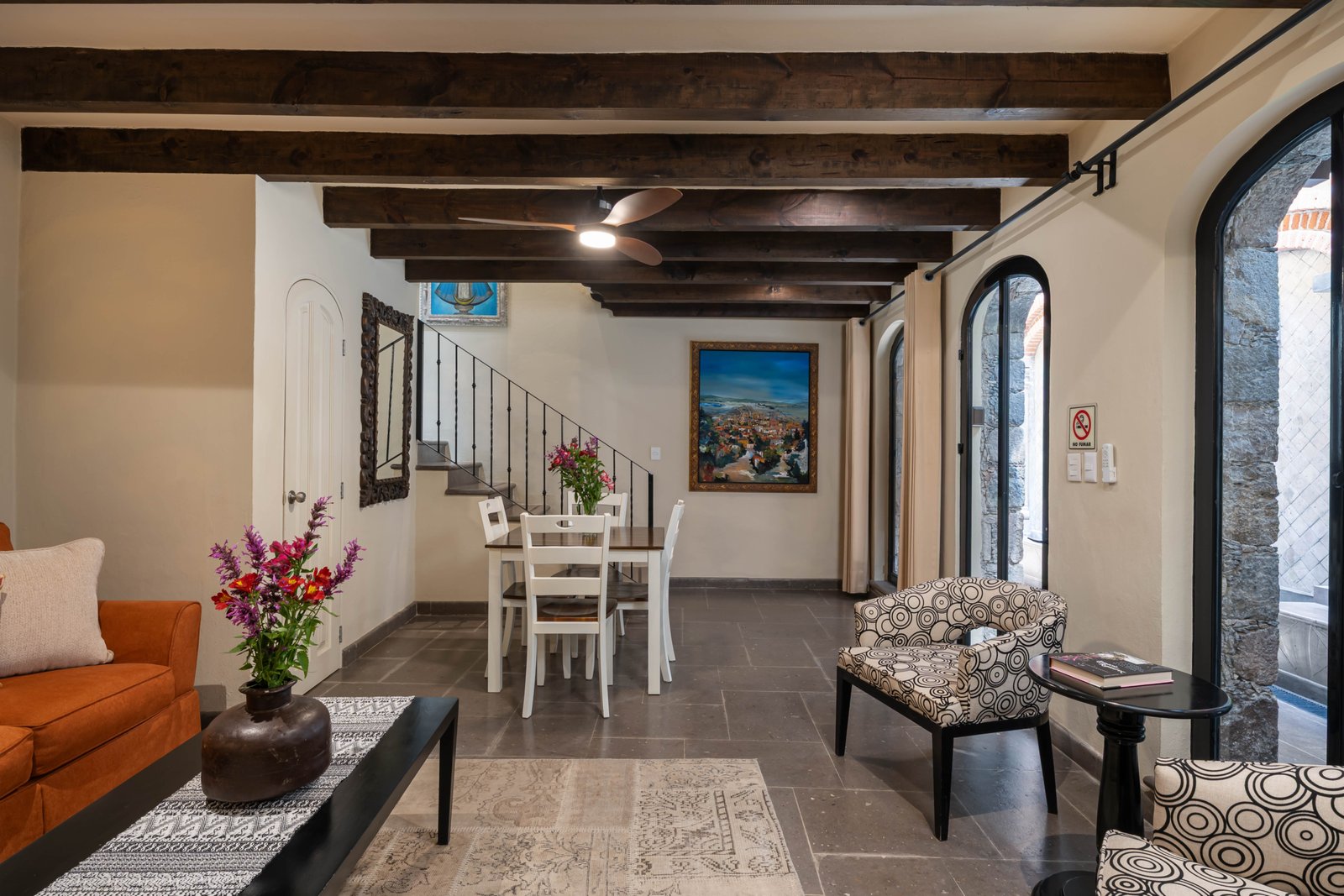 Welcome to Casa Biblioteca, located in the heart of San Miguel and literally right next door to the library. This 7 bedroom multi-unit residence speaks Mexican Authors, as each of the 6 independent units is named after a Mexican author. It is beautifully decorated with a combination of Mexican charm with some contemporary details . Each room has a description and story about each Author, cleverly designed. There are splits throughout all of the units as well as