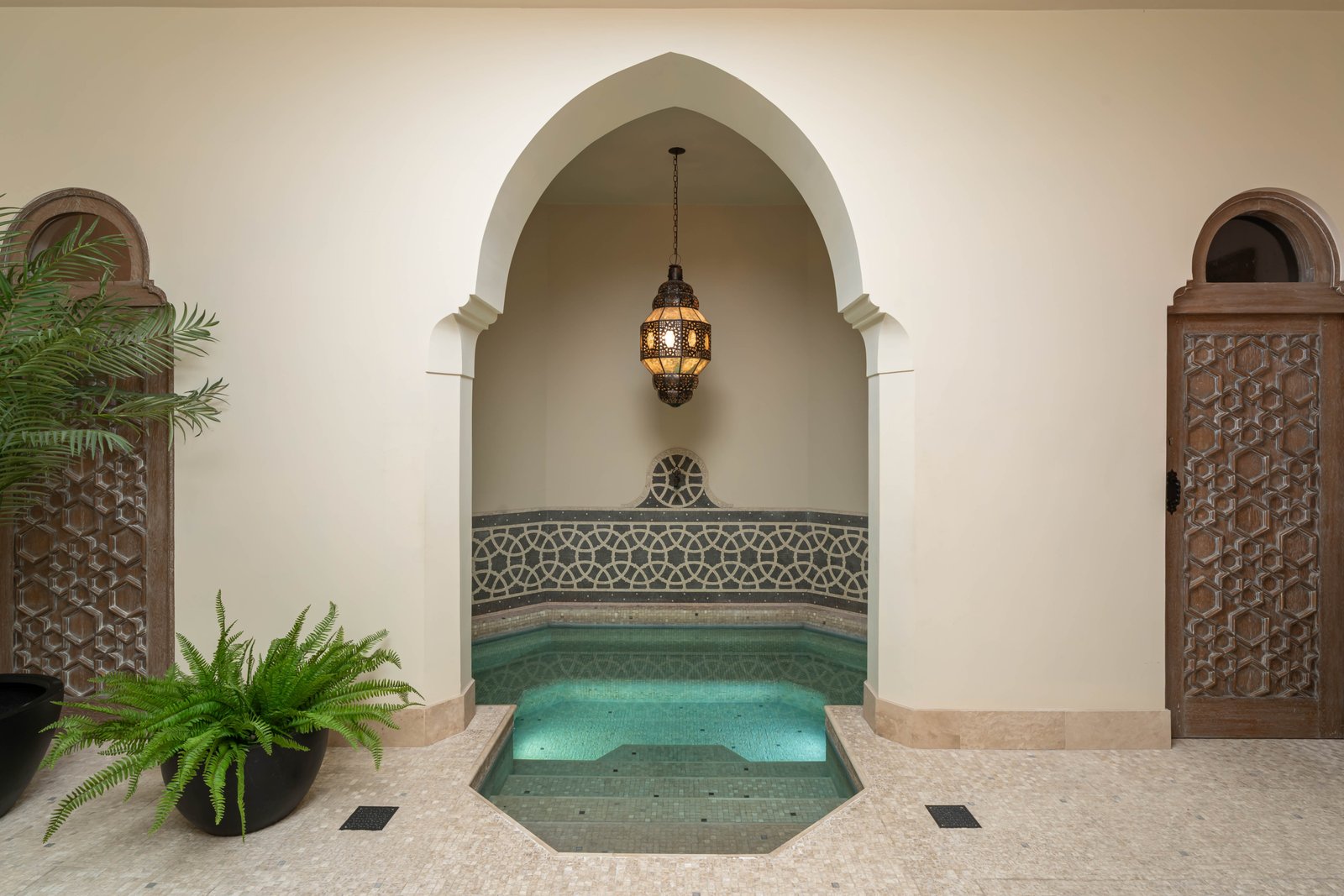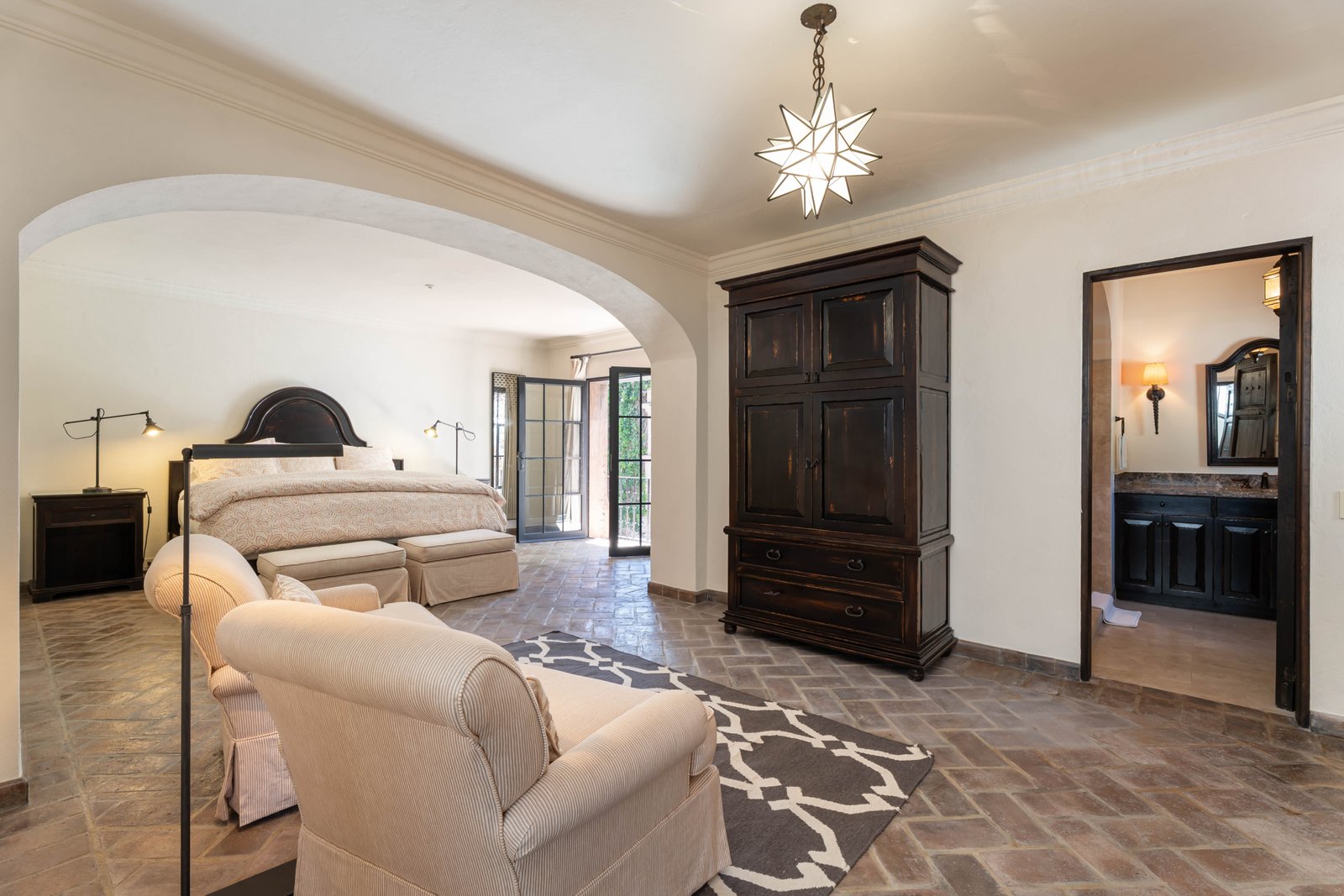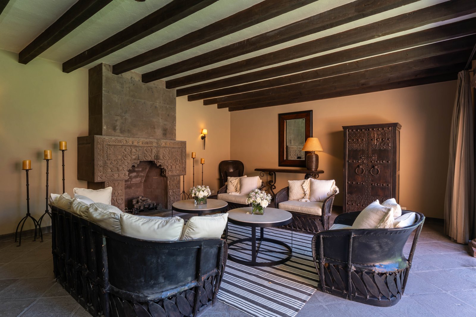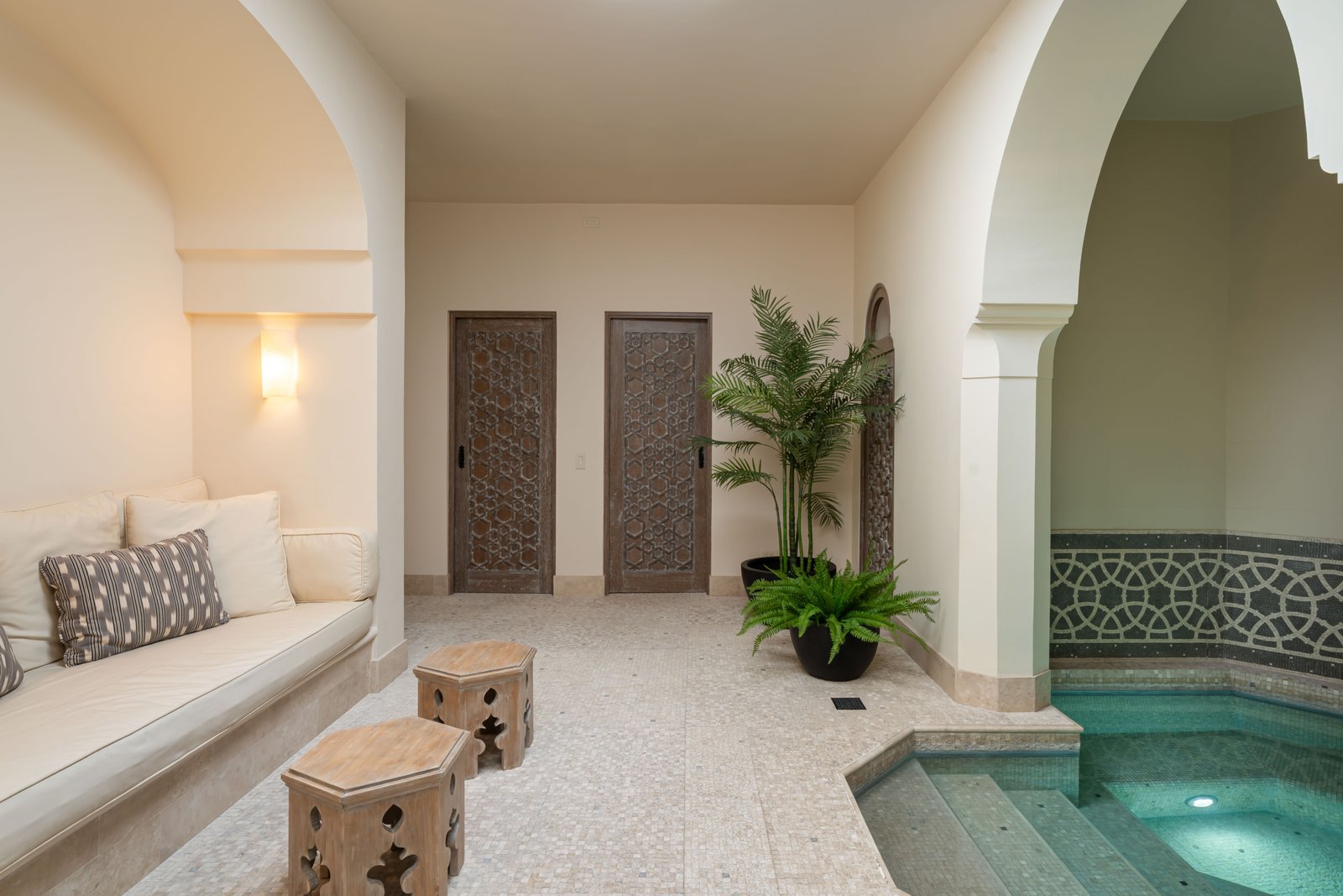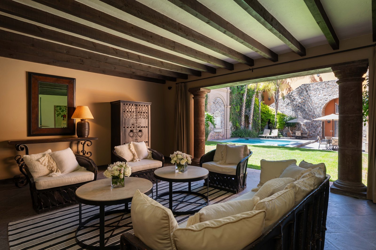 handkerchief ceilings into this breathtaking estate . Enjoy the expansive patio, large pool and lush lawn. With 6 spacious bedrooms with ensuite bathrooms, a hammam, 2 outdoor covered salas, a roof terrace with views of La Parroquia; every corner of this home is designed for relaxation and entertaining. Your dream retreat awaits!