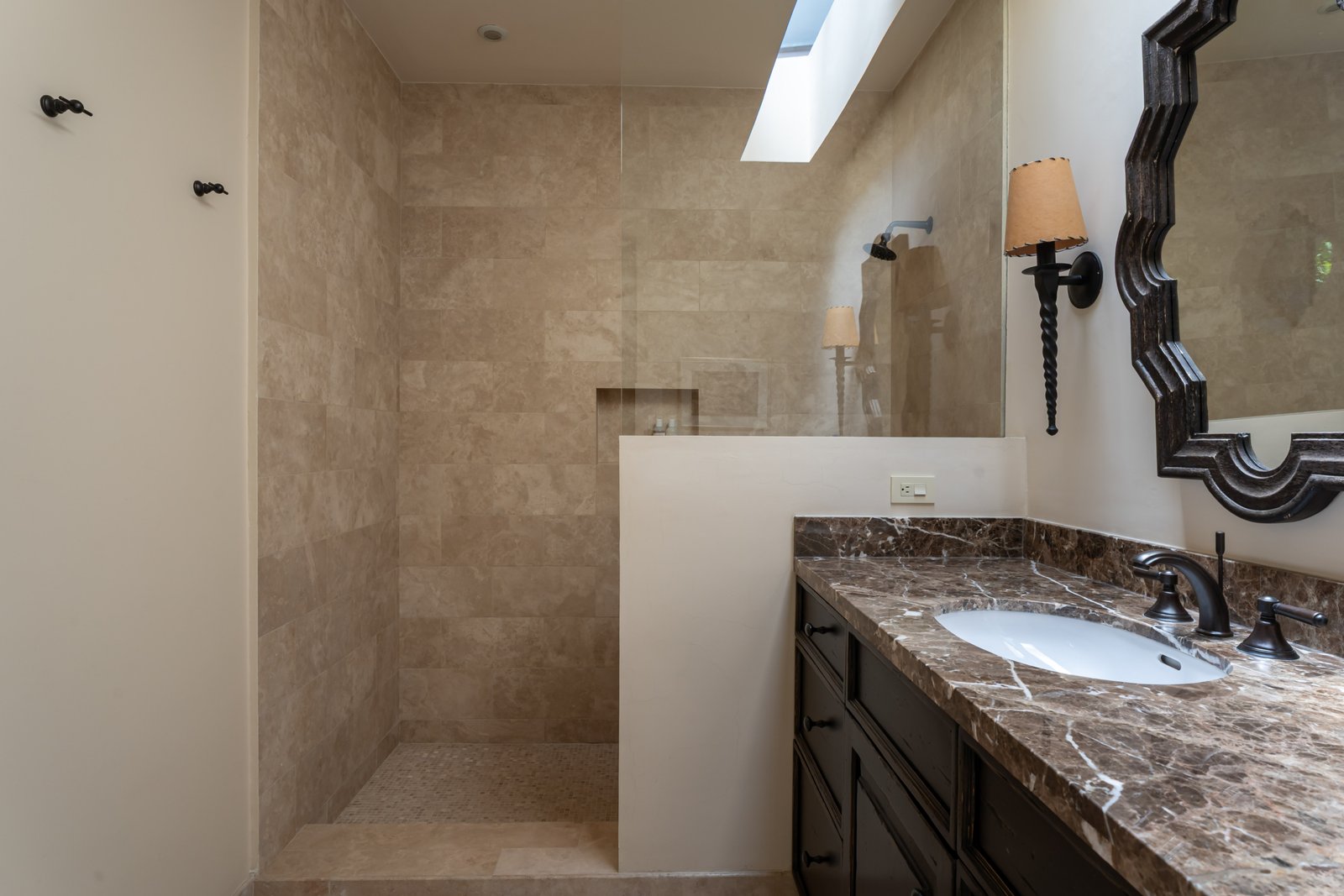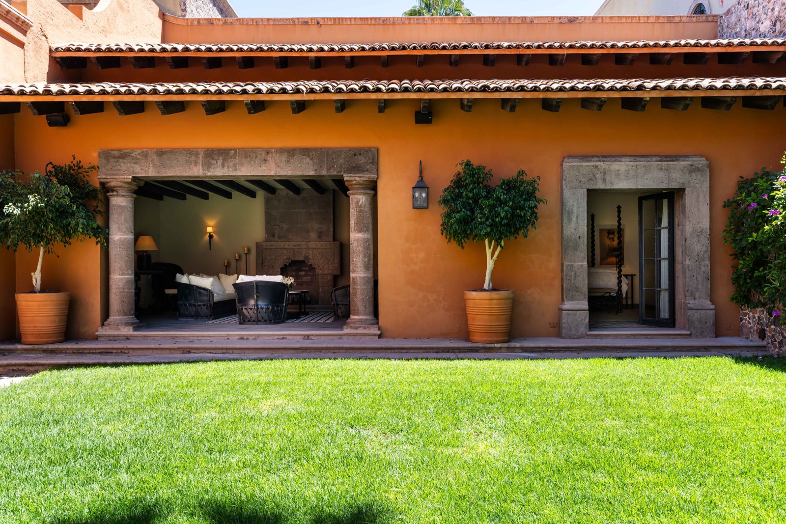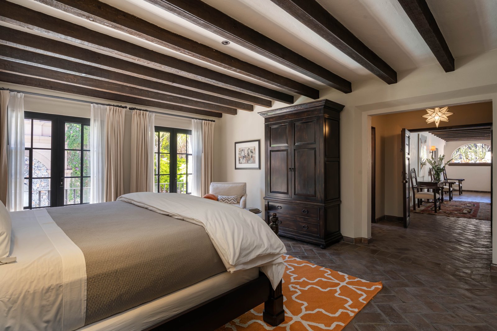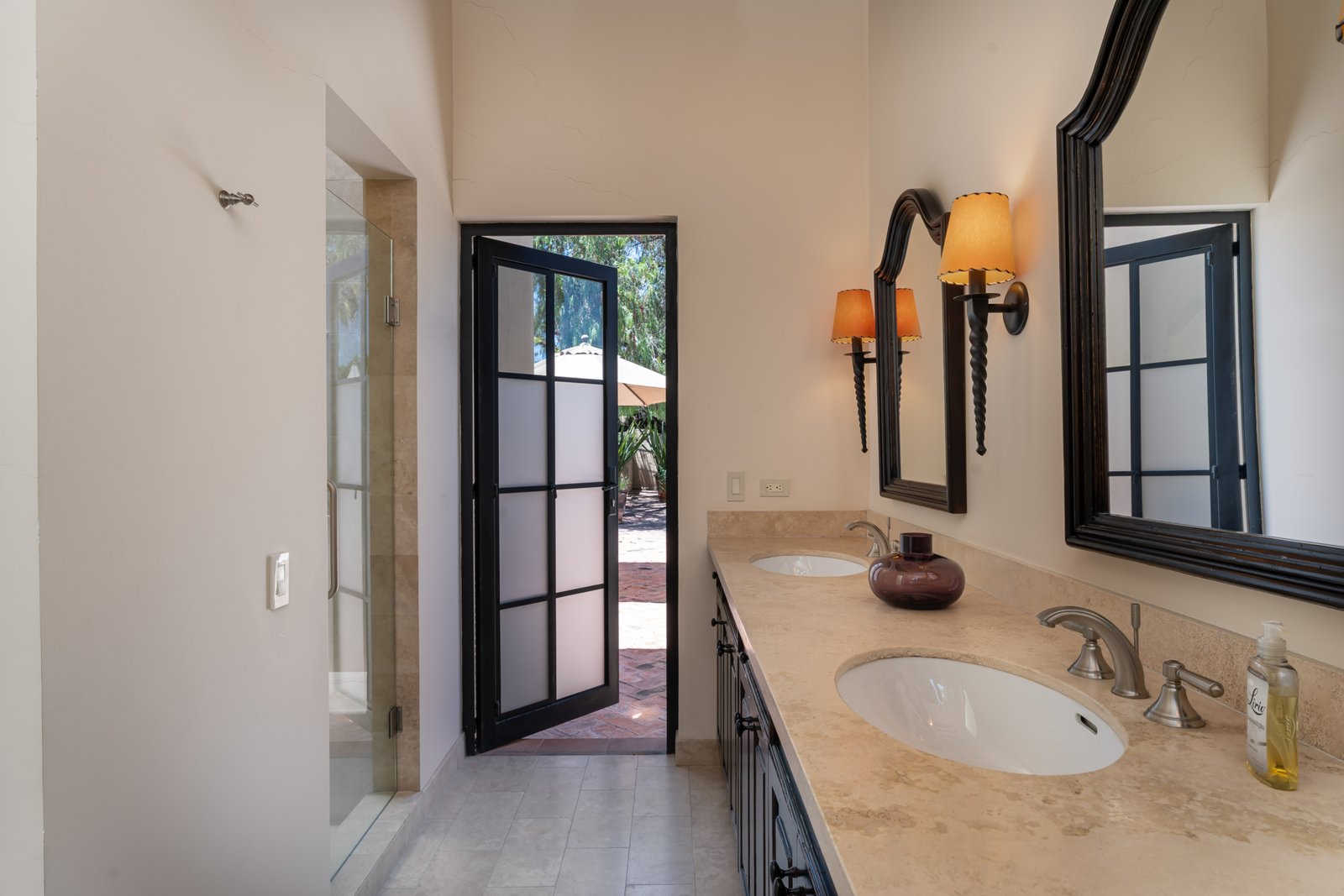 handkerchief ceilings into this breathtaking estate . Enjoy the expansive patio, large pool and lush lawn. With 6 spacious bedrooms with ensuite bathrooms, a hammam, 2 outdoor covered salas, a roof terrace with views of La Parroquia; every corner of this home is designed for relaxation and entertaining. Your dream retreat awaits!