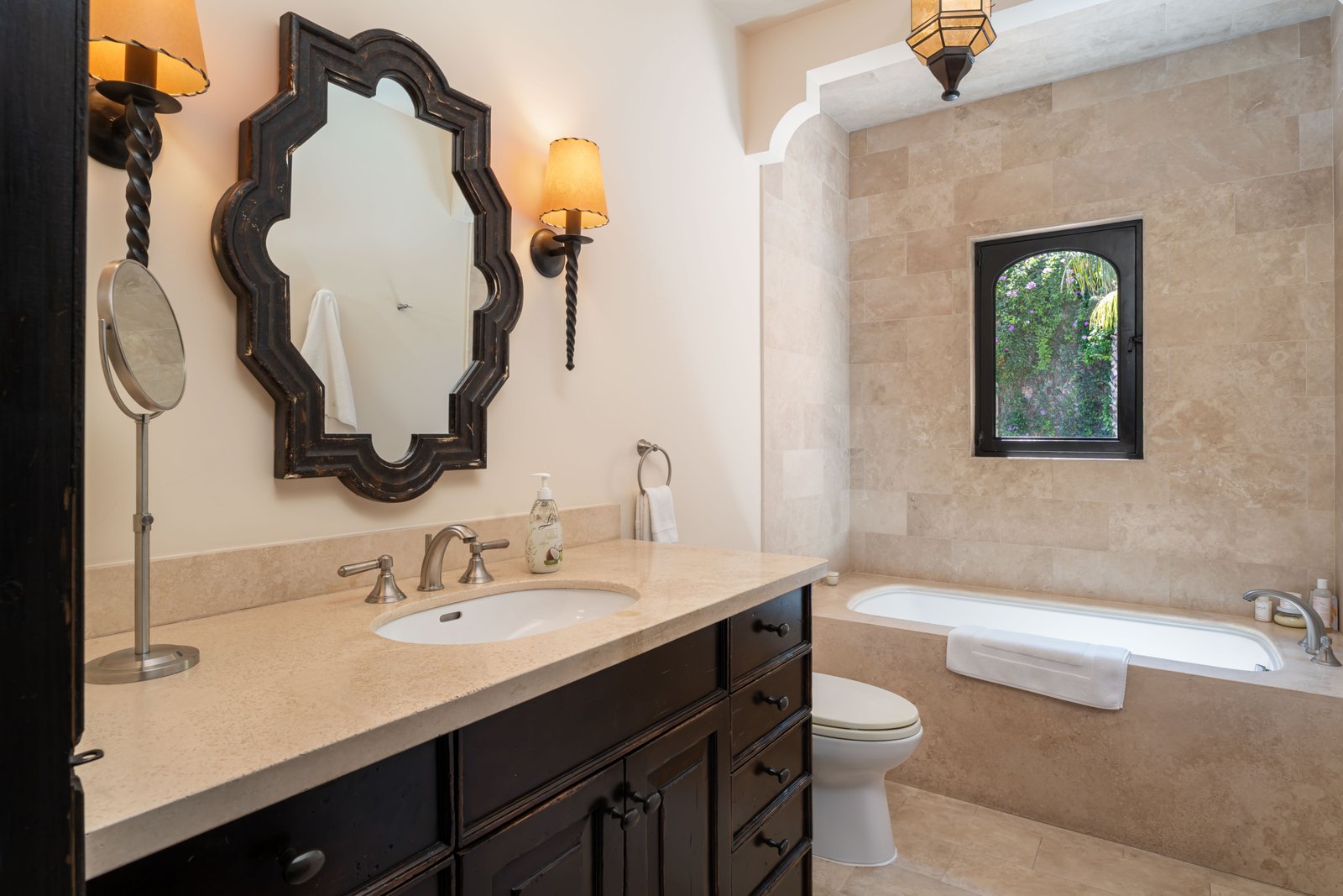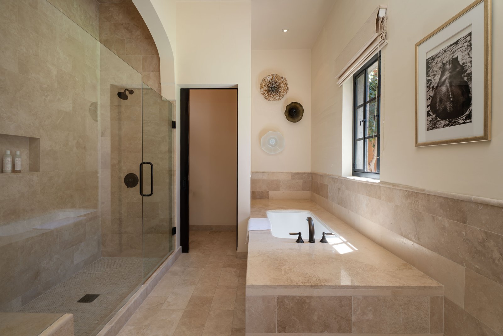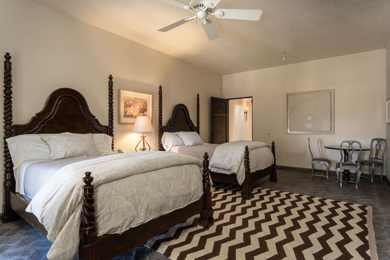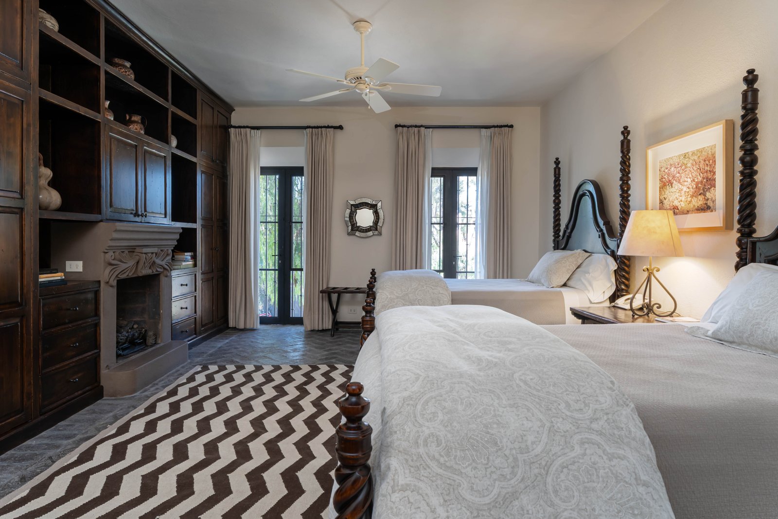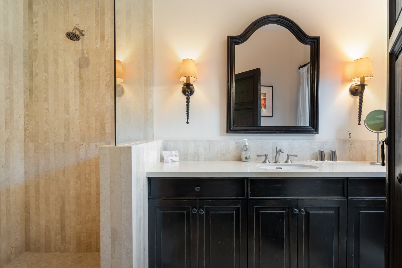 handkerchief ceilings into this breathtaking estate . Enjoy the expansive patio, large pool and lush lawn. With 6 spacious bedrooms with ensuite bathrooms, a hammam, 2 outdoor covered salas, a roof terrace with views of La Parroquia; every corner of this home is designed for relaxation and entertaining. Your dream retreat awaits!
