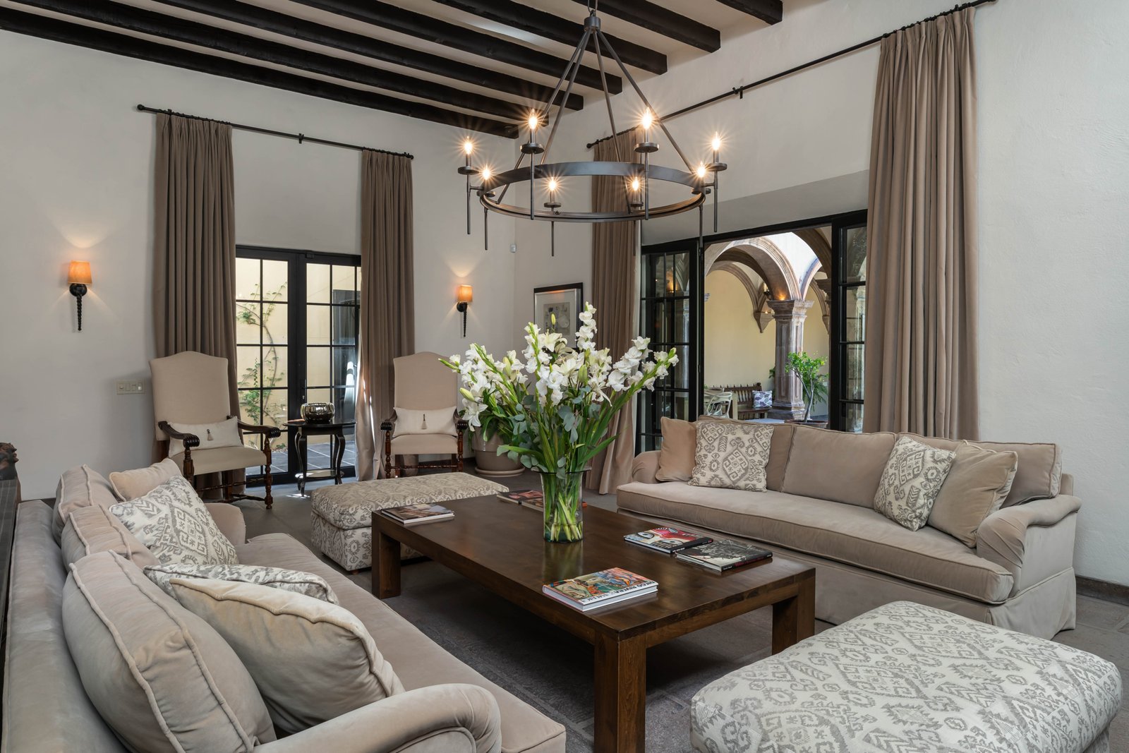 Welcome to Casa Encantada, a luxurious estate in the heart of San Miguel de Allende. Remodeled by renowned architect Nicole Bisgard, this stunning property offers an enchanting blend of elegance and modern comforts. As the door opens you are greeted by an atmosphere of awe and beauty, as you walk through grand arches,