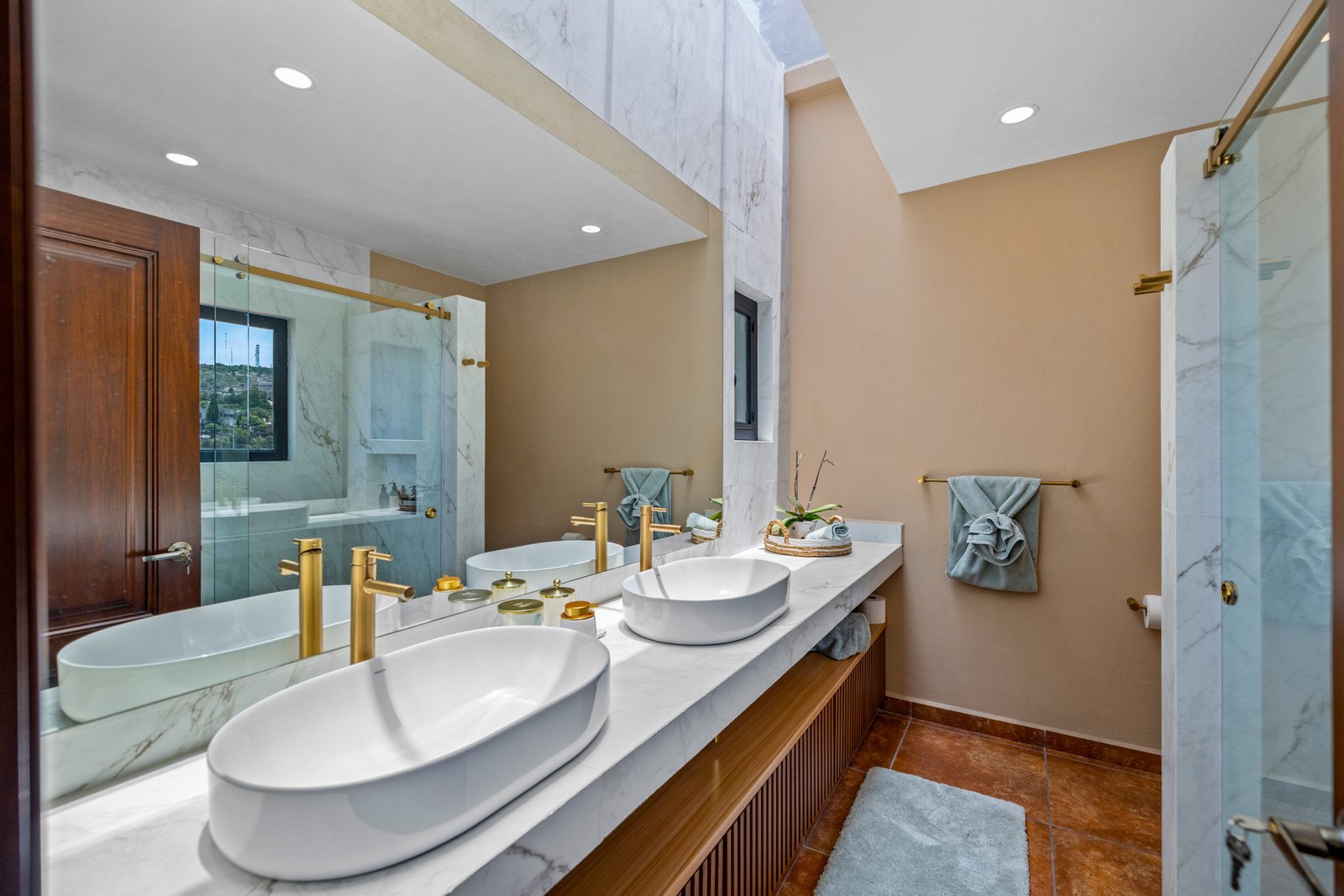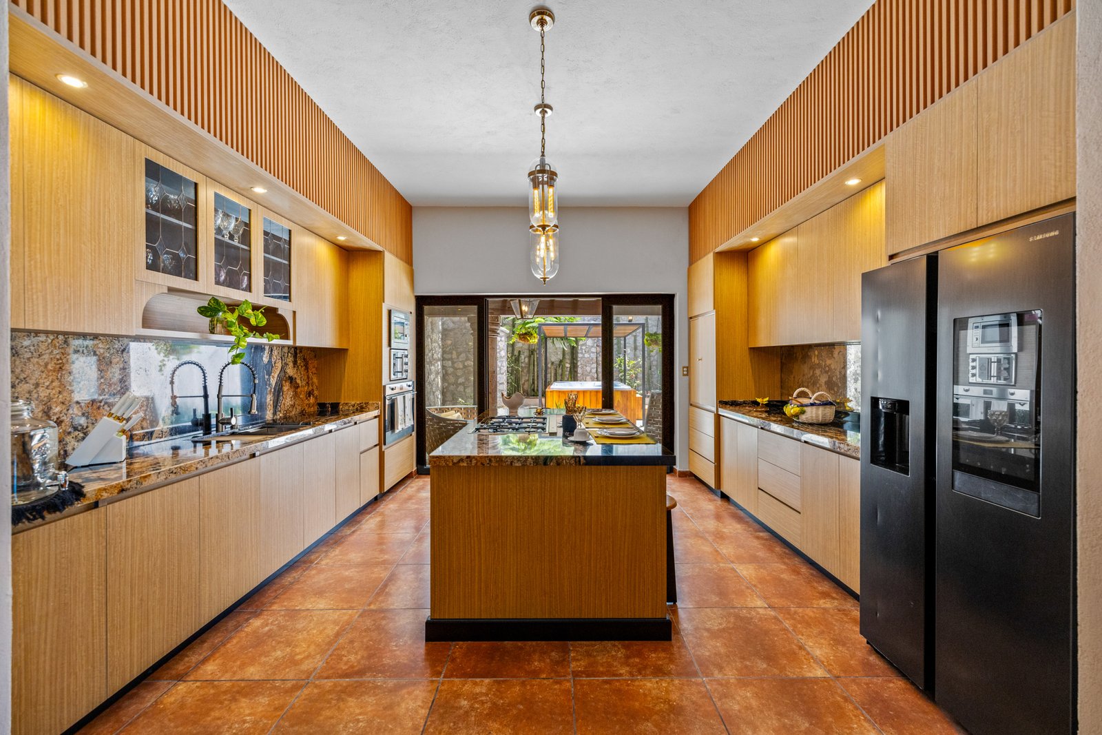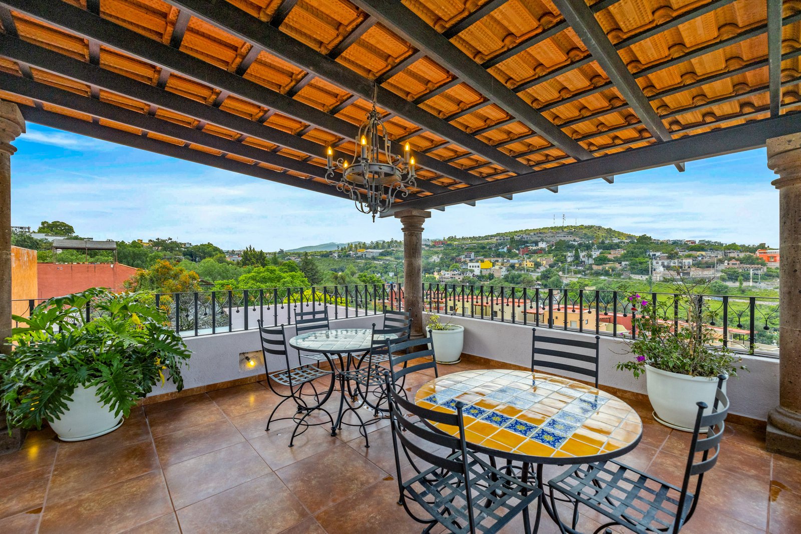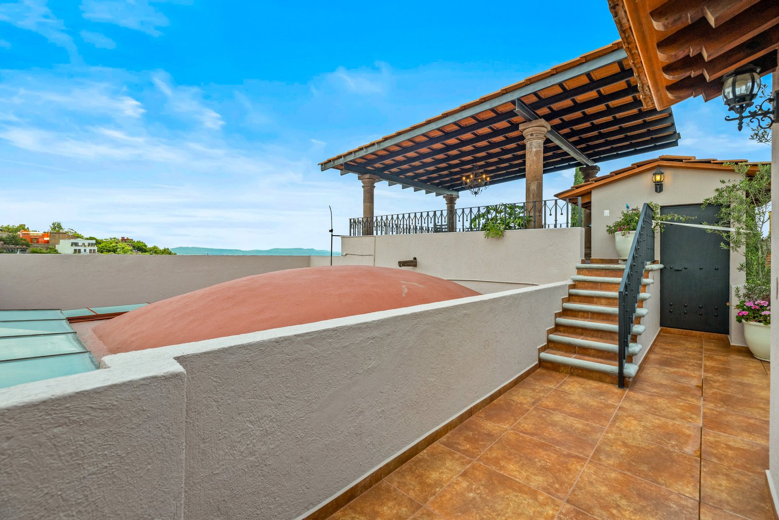 The gourmet kitchen is a chef’s dream boasting top of the line appliances, granite countertops and a large central island ideal for casual meals or social gatherings. Just off the kitchen, a tranquil courtyard offers a private retreat with a movable daybed and a jacuzzi for six perfect for relaxing under the stars. Upstairs, all three bedrooms are generously sized, each with dual mini-split units for year round comfort. The primary suite features a luxurious walk-in closet and a spa like bathroom with double vanity. Every room is designed for both comfort and style. On the third level, the rooftop terrace offers panoramic views of San Miguel’s historic Centro and the rolling valley beyond a magical setting for sunset cocktails or morning coffee. Whether you’re looking for a full time residence, a luxurious vacation home or an investment property, Casa Mezquite delivers on all fronts location, design and function.
