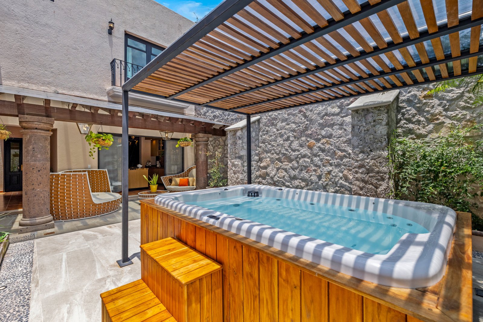 Tucked away just minutes from the heart of Centro, Casa Mezquite blends contemporary Mexican design with comfort and elegance. This stunning 3 bedroom, 3 bathroom home offers the perfect balance of modern amenities and authentic charm all just a 5 minute drive or a scenic 15 minute walk to the iconic Parroquia.