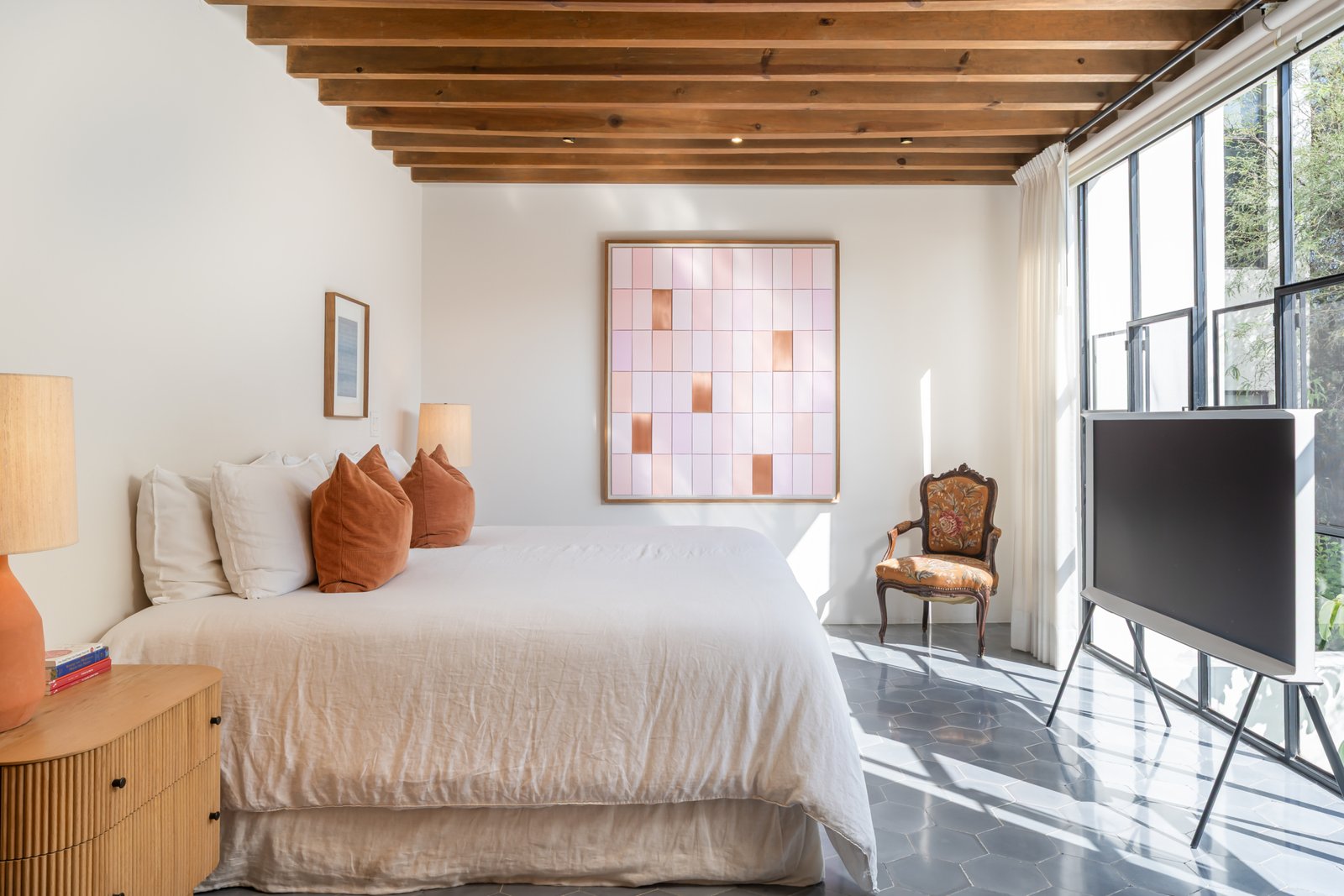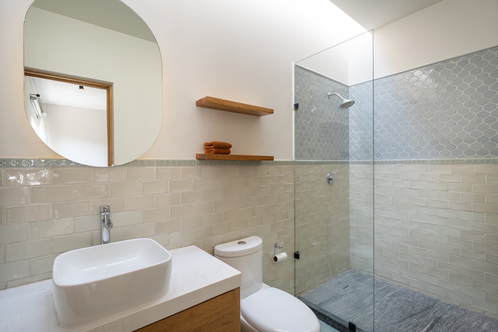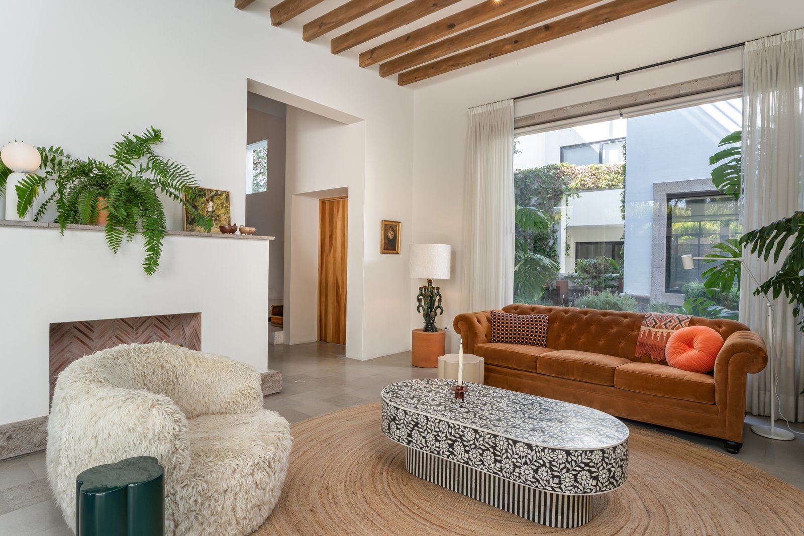 Designed for contemporary living, the home features an open concept living and kitchen area flooded with natural light, creating a seamless flow ideal for everyday comfort and effortless entertaining. Expansive windows allow abundant sunlight to allow abundant sunlight in and frame two panoramic views; the historic San Antonio Church on one side and the surrounding mountain landscape on the other. The result is a refined and authentic expression of modern Mexican living.