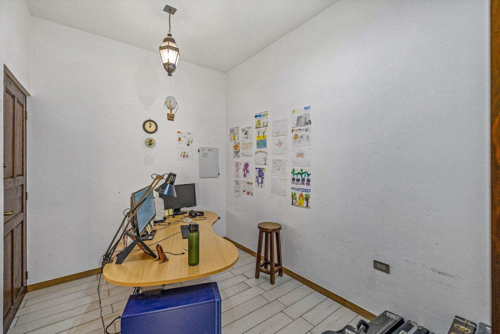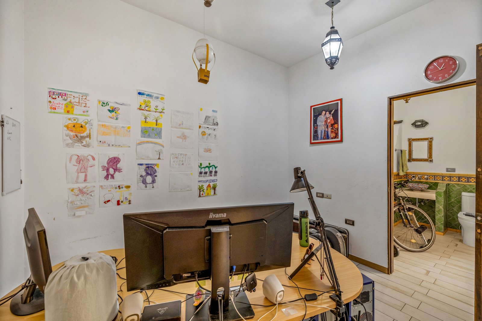 On the second floor, you’ll find a comfortable TV room, three bedrooms, and two full bathrooms, providing a practical and private layout for the sleeping area. This level also features a rear terrace, ideal for enjoying the outdoors.