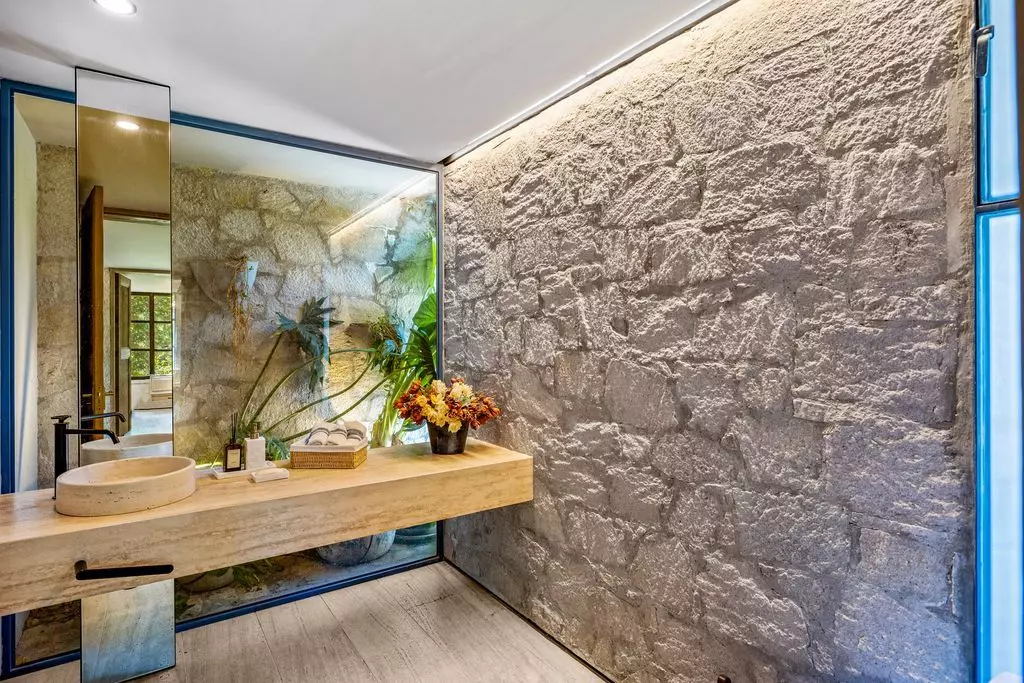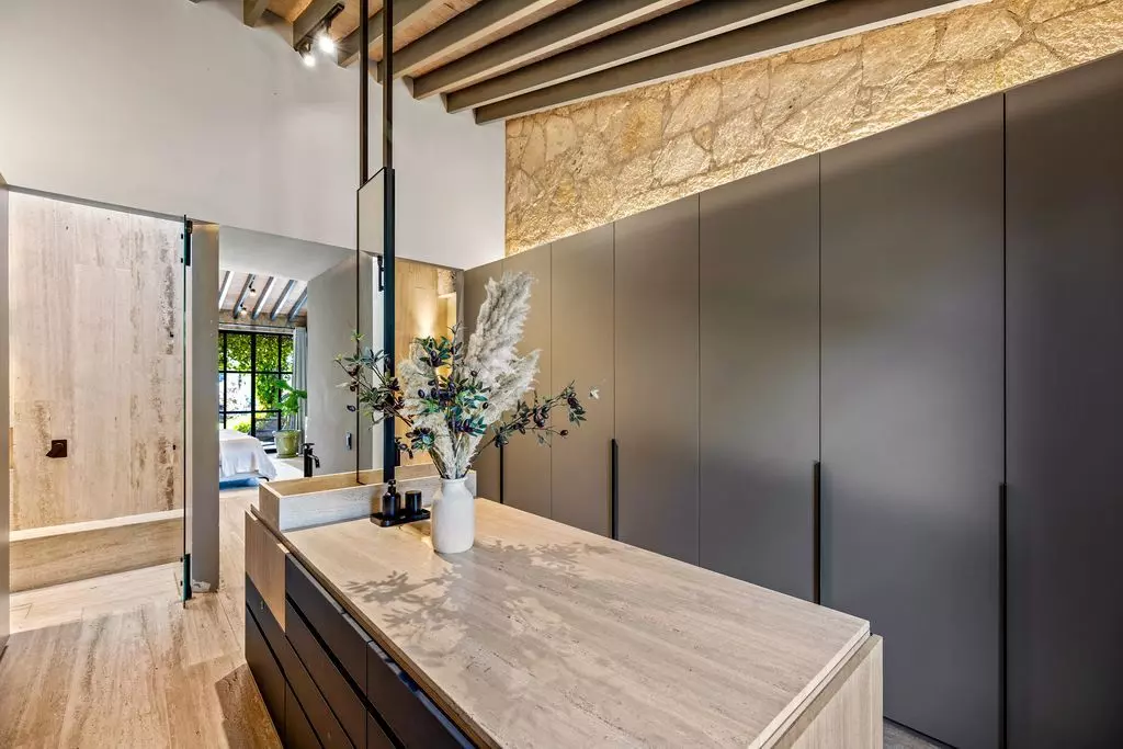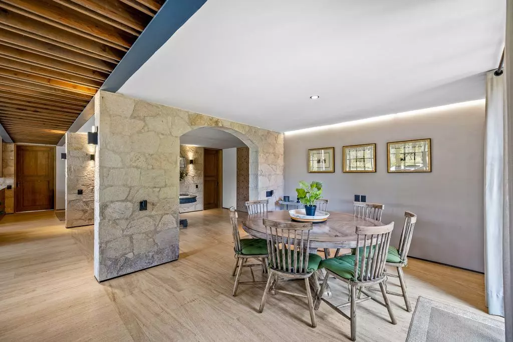 Casa Wisteria captures the essence of indoor-outdoor living. Sunlit rooms open to peaceful terraces overlooking the vines, while the open-concept kitchen, high ceilings, and serene gardens invite effortless entertaining and relaxation. Beyond its hand-carved wooden doors, the home unfolds into luminous, open spaces that balance rustic textures with contemporary sophistication. Soaring ceilings, exposed beams, and artisanal woodwork create an atmosphere of understated grandeur, while expansive glass doors blur the boundaries between indoor comfort and the natural beauty outdoors.