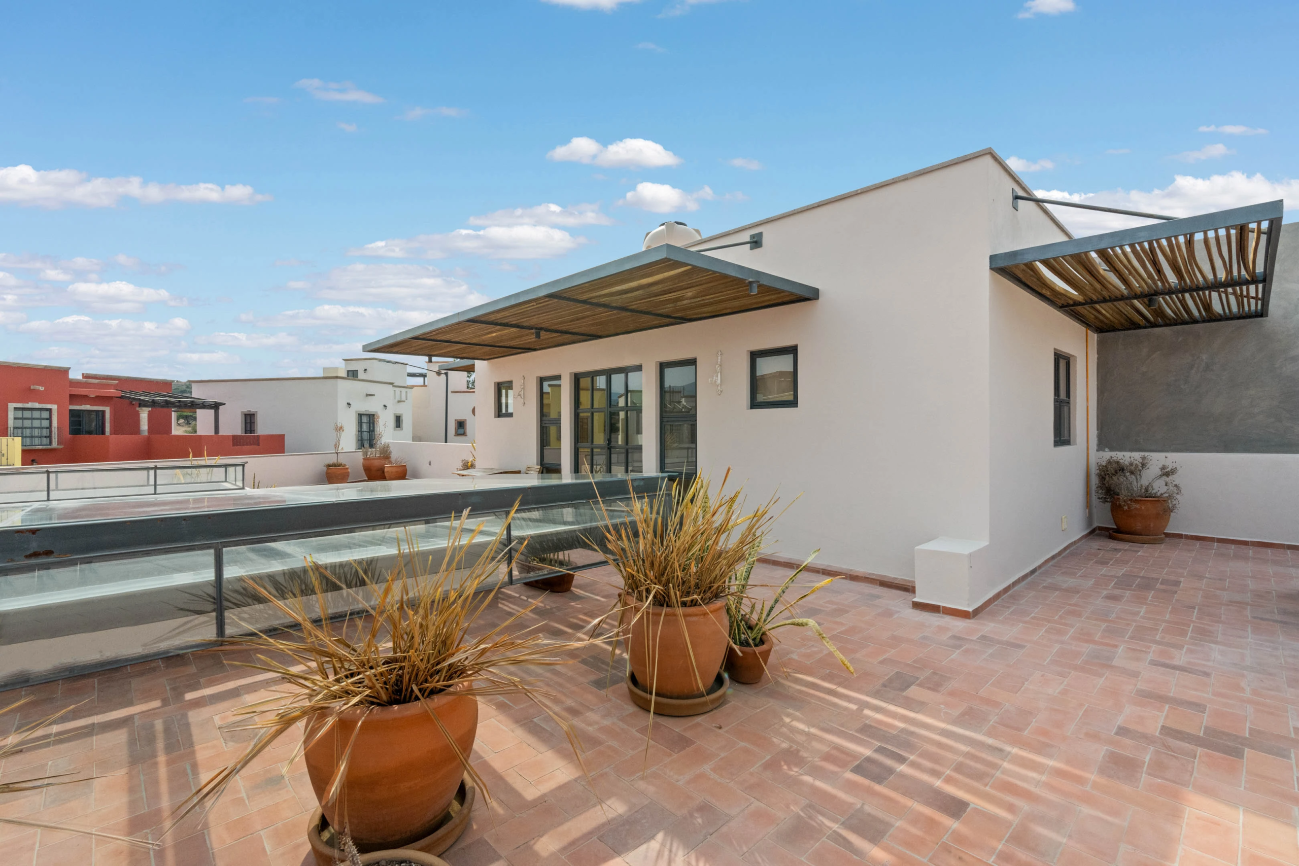 Located within an exclusive gated community, just a 10 minute drive from the lively city center and the iconic Parroquia de San Miguel Arcángel, lies your contemporary sanctuary. A true showcase of modern elegance, this single level residence featuring two bedrooms, a studio, and a small office embodies luxury living at its finest.