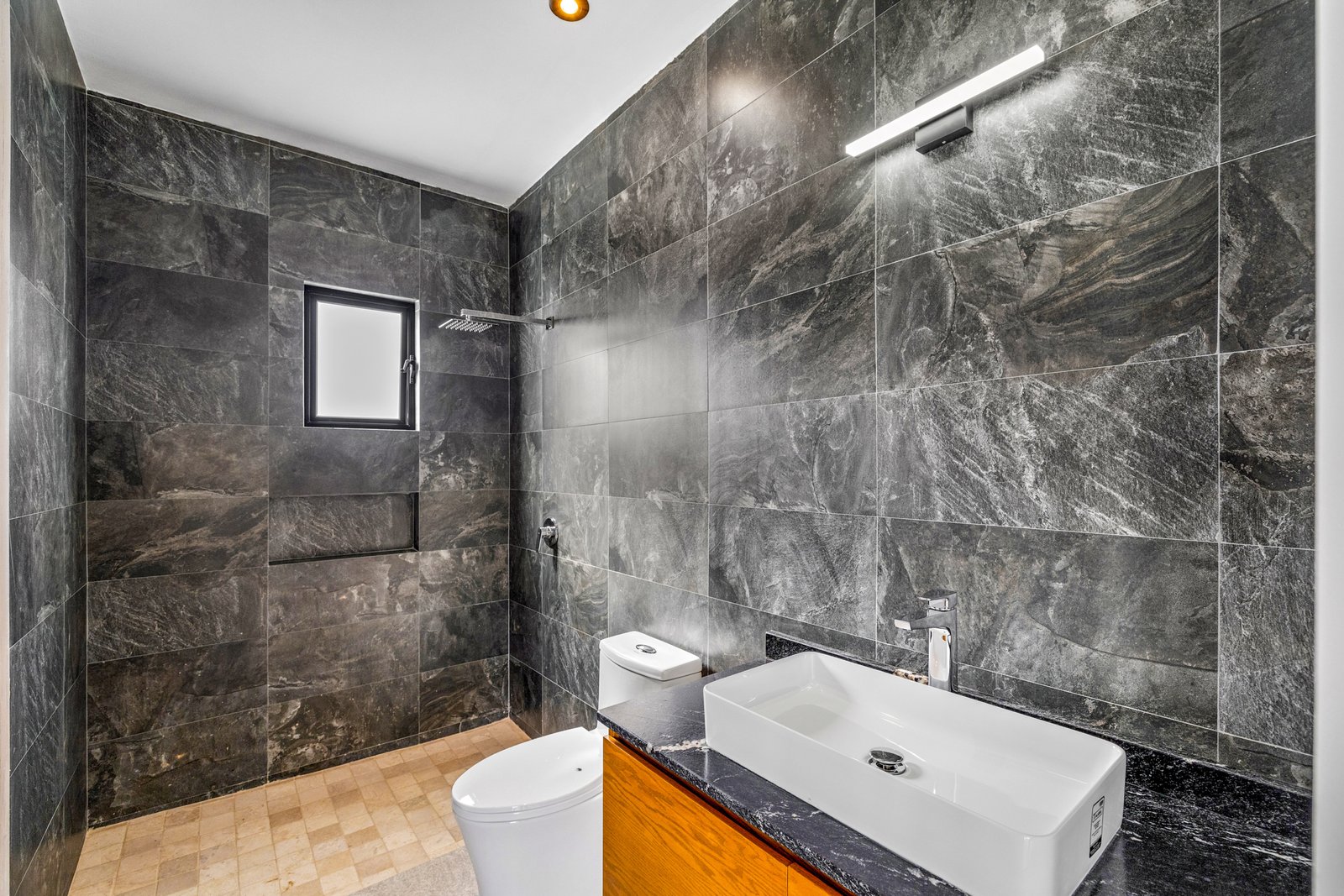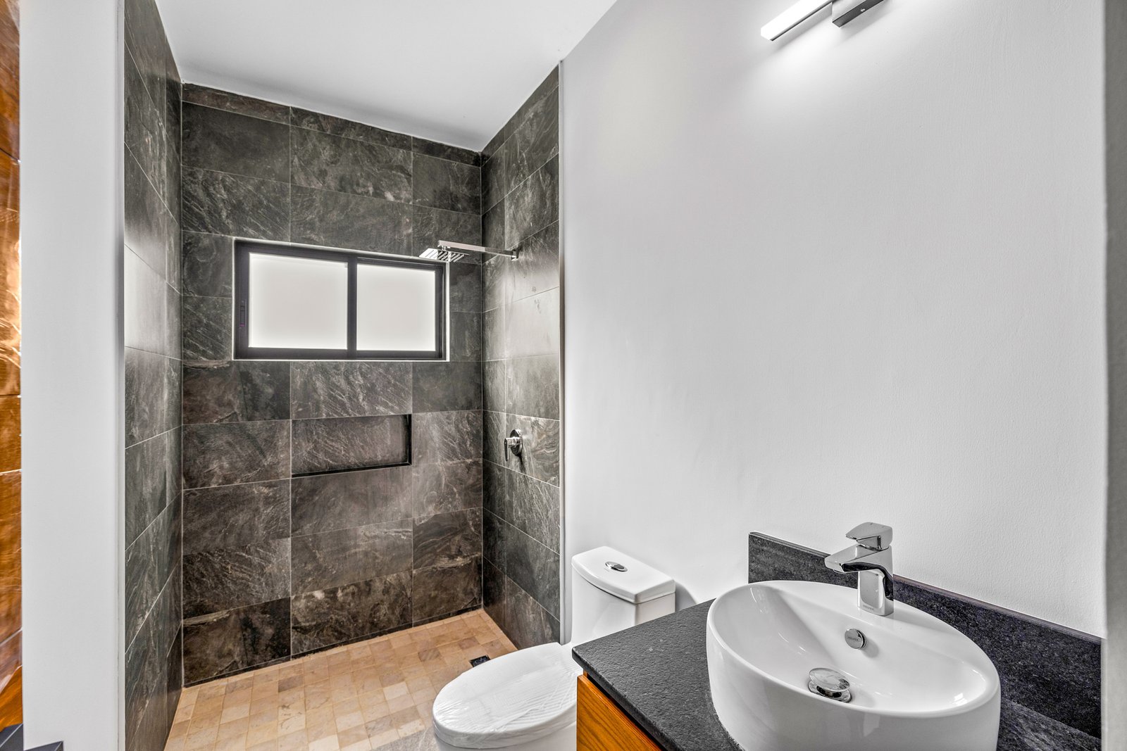 This completely new property is designed to offer comfort, space, and modern finishes. The ground floor features two bedrooms, two full bathrooms, a spacious living and dining area, and a kitchen equipped with a granite countertop. The Galarza stone walls and large windows connecting to the garden provide abundant natural light and a warm, inviting atmosphere. The secondary bedroom on the ground floor is particularly large and includes a balcony with direct access to the garden.